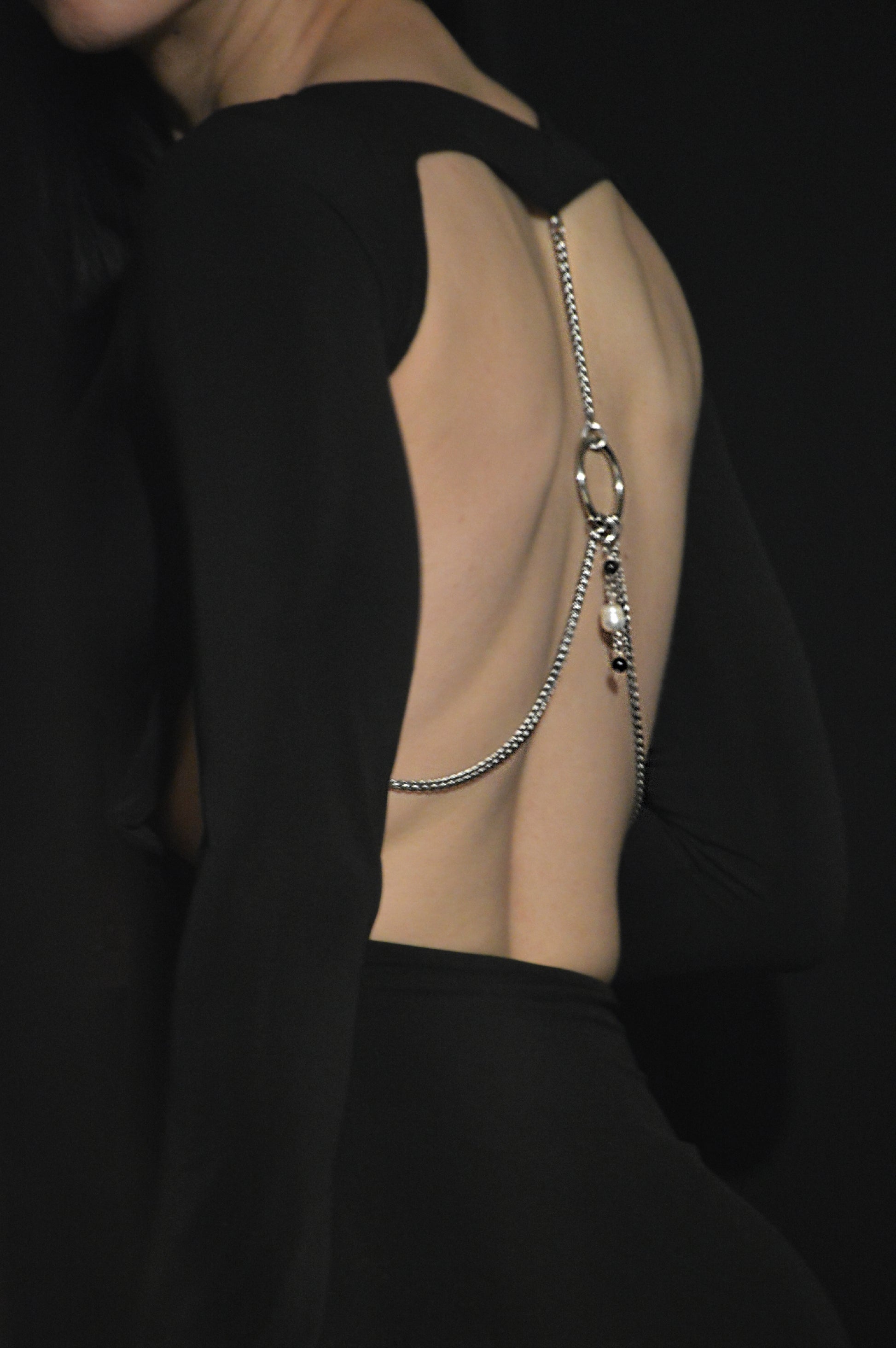 Made from super jersey fabric, this dress feels incredibly soft and lightweight against your skin. Handmade chains and margaritas add a touch of elegance to this versatile piece. With stainless steel hardware. Machine-washable with a bag.